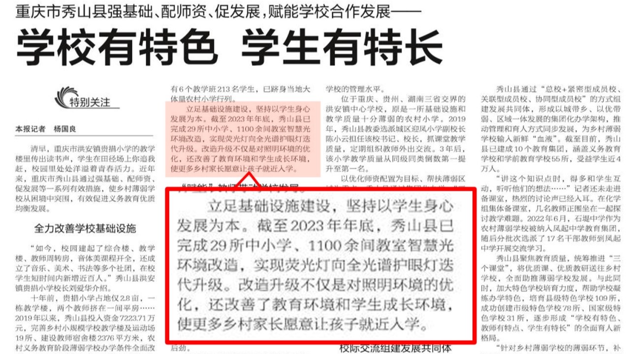 近年來,重慶市秀山縣通過強(qiáng)基礎(chǔ)、配師資、促發(fā)展等一系列有效措施,使鄉(xiāng)村薄弱學(xué)校從困境中突圍,有效促進(jìn)義務(wù)教育優(yōu)質(zhì)均衡發(fā)展。